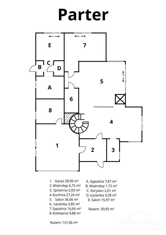POWIERZCHNIA netto, liczona po podłodze 303m2: