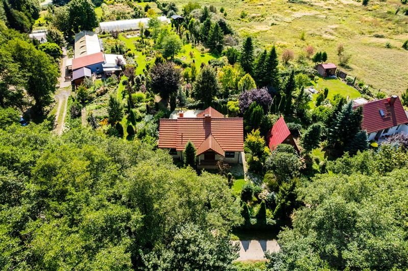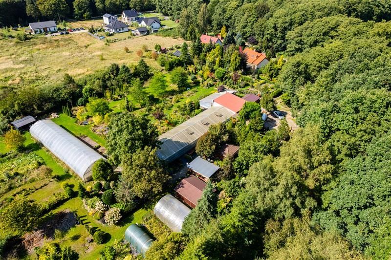 Nieruchomość składa się z czterech działek, które dotychczas funkcjonowały jako centrum ogrodnicze, co czyni ją doskonałą inwestycją z możliwością kontynuacji działalności. Na terenie znajduje się również dom jednorodzinny o powierzchni zabudowy 131 m², idealny do zamieszkania lub do wykorzystania jako siedziba właściciela prowadzącego działalność gospodarczą.