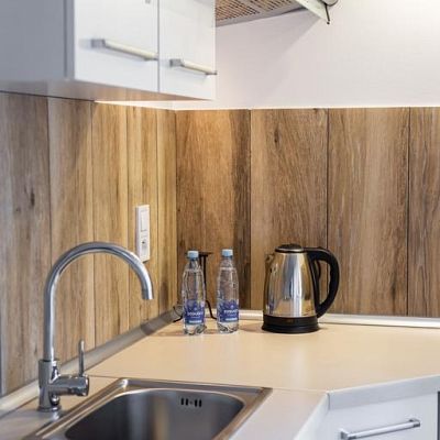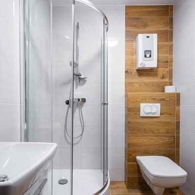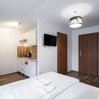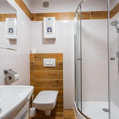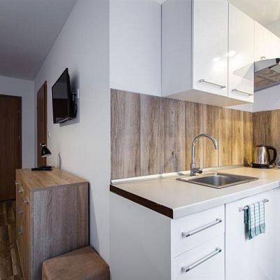 W apartamentach woda podgrzewana z podgrzewaczy przepływowych elektrycznych. Do apartamentów osobne wejście z zewnątrz budynku.