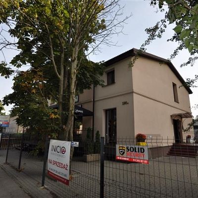 Budynek wolnostojacy z własnym parkingiem, ogrodzony, dwukondygnacyjny, z piwnicą 30m2.
