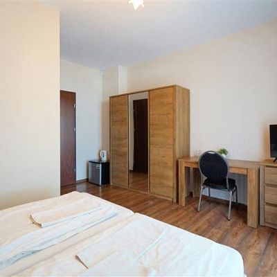 Obiekt posiada łącznie 7 apartamentów, każdy wyposażony w prywatną łazienkę oraz mały kącik kuchenny, zapewniając niezależność i komfort. Dodatkowo na terenie nieruchomości znajduje się parking dla gości, ogólnodostępna kuchnia i zewnętrzne miejsce do wypoczynku i grillowania.