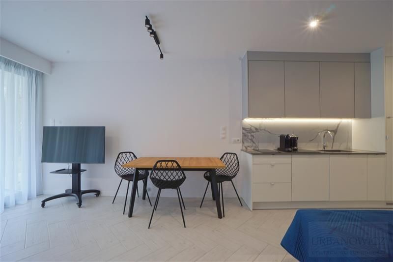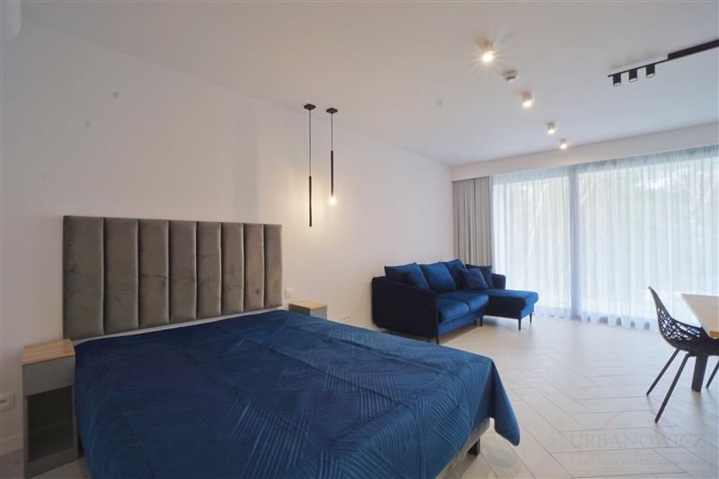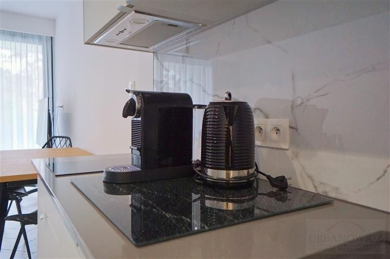 Apartament jest kompletnie wyposażony w komfortowym stylu, z meblami oraz wszystkimi niezbędnymi do zamieszkania lub wynajmu sprzętami (mikrofala, ekspres do kawy, sztućce, garnki, talerze, pościel, meble tarasowe).