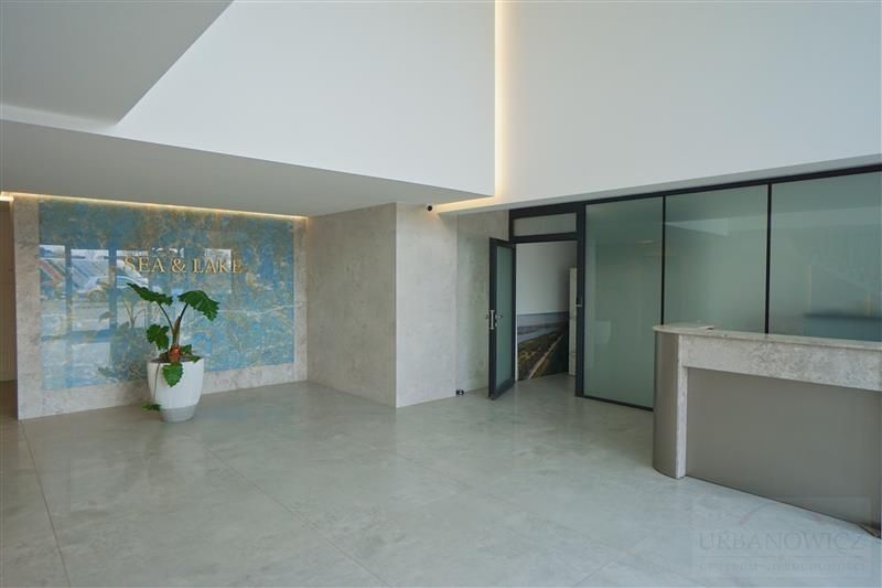 Lokal usytuowany jest na pierwszym piętrze w nowo wybudowanym budynku apartamentowym który posiada dla właścicieli apartamentów 1000m2 taras wypoczynkowy na dachu budynku z basenem z przeciwprądami i z widokiem na jezioro.