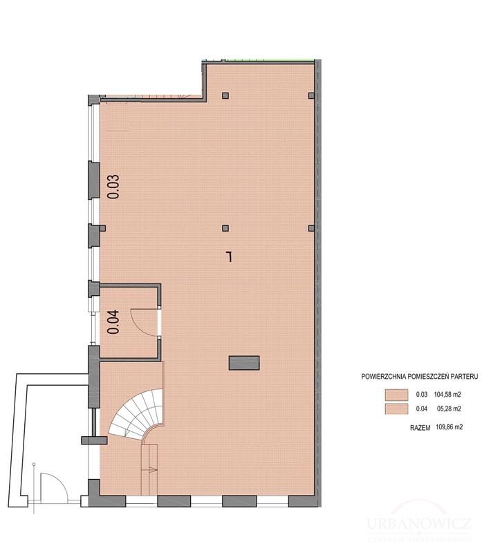 na pierwszym poziomie duża 100 metrowa sala sprzedaży, a na niższym poziomie druga otwarta przestrzeń oraz zaplecze socjalne.