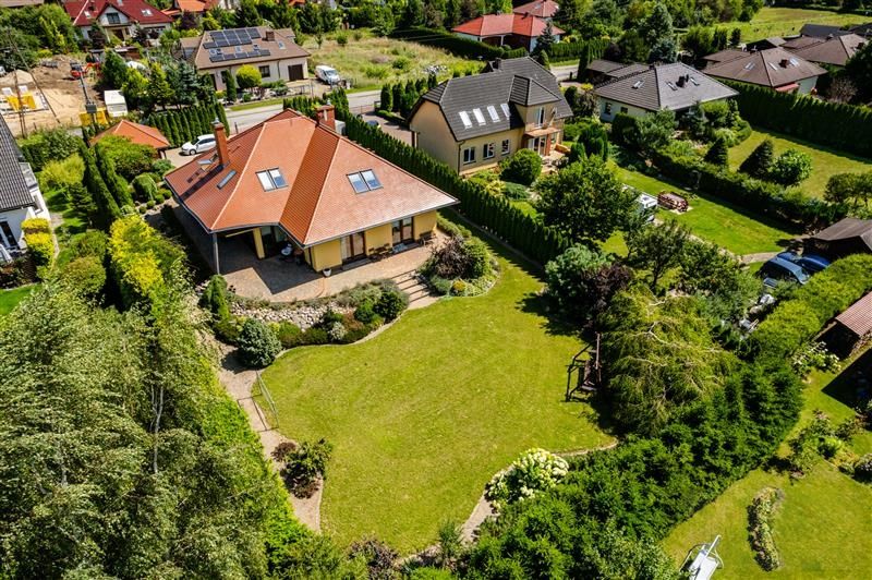 Budynek posadowiony na pięknie zagospodarowanej działce o powierzchni 1404m2.