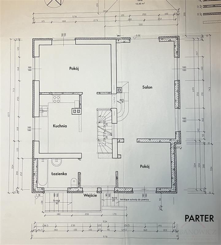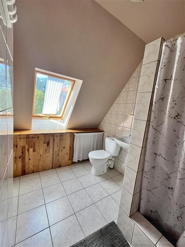 Część piwniczna domu znajduje się pod starą częścią budynku, z bezpośrednim wyjściem na ogród – idealna na pracownię, spiżarnię lub dodatkowe pomieszczenia gospodarcze.