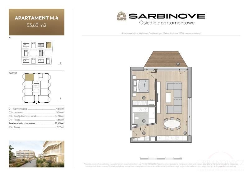 Przedstawiamy w ofercie 2 pokojowy apartament położony na parterze w Budynku A1 inwestycji SARBINOVE. To wyjątkowy lokal o powierzchni projektowanej 53,63m² cechujący się wysokim standardem wykonania i świetną lokalizacją, położony zaledwie 190m od morza w zachodniej części Sarbinowa.