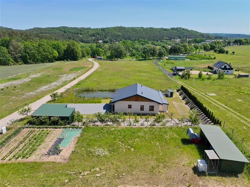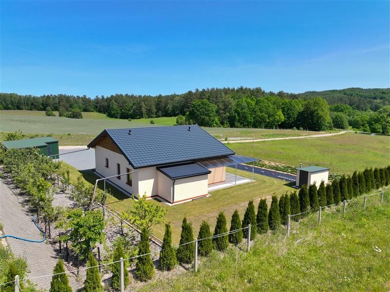 Nieruchomość położona w cichym, spokojnym miejscu z pięknym widokiem na okoliczny las – idealna dla osób ceniących prywatność, naturę oraz bliskość terenów rekreacyjnych.