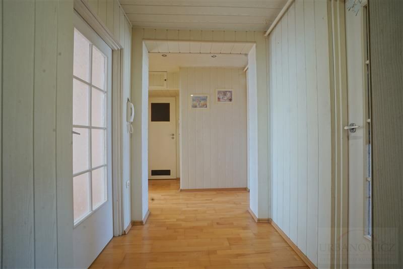W pokojach i korytarzu na podłogach deska barlinecka, w kuchni i łazience oraz WC terakota.
