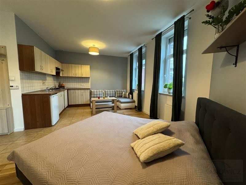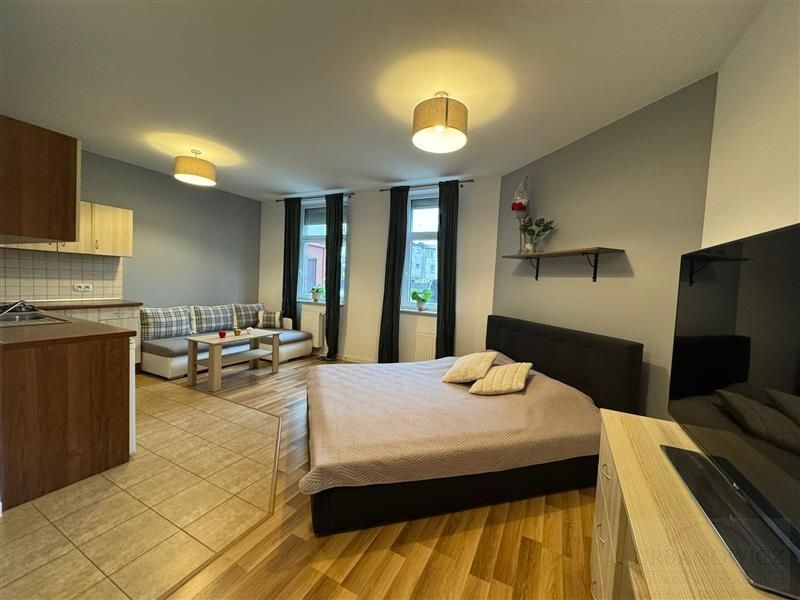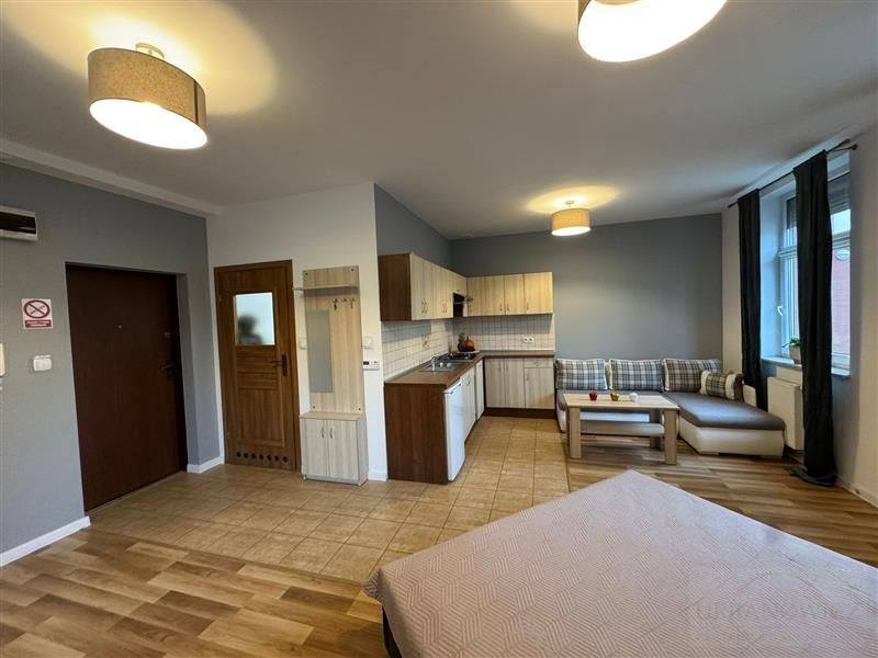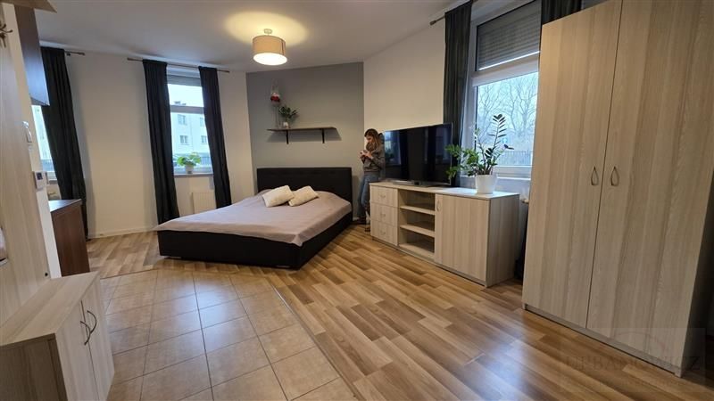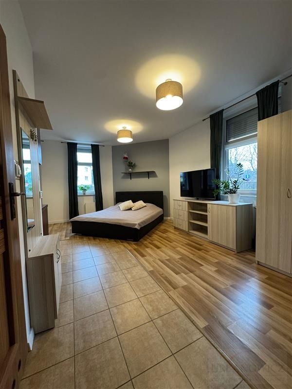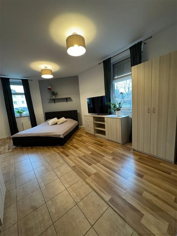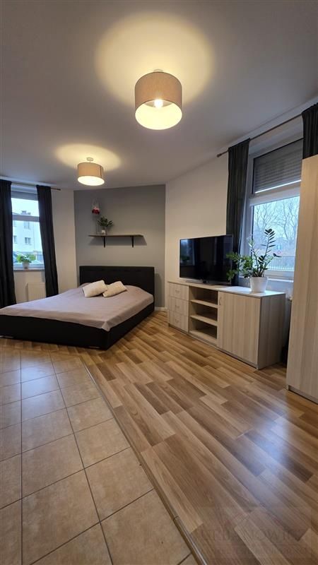 W pokoju łóżko sypialniane i kanapa narożnikowa co pozwala na wynajem rodzinie. Wszystko zostaje w cenie lokalu.