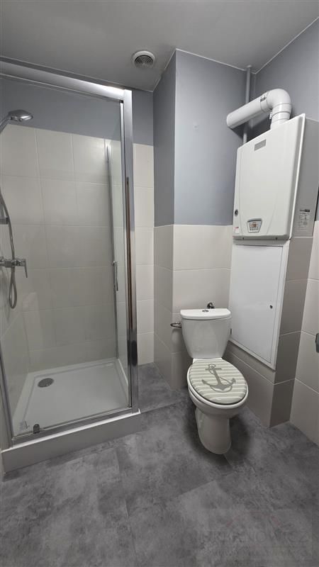 Łazienka: bojler elektryczny, kabina prysznicowa, wc.