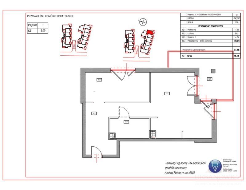 Cztery pokoje, aneks kuchenny, łazienka i do lokalu przynależy komórka lokatorska. Stan deweloperski, lokal na I piętrze.