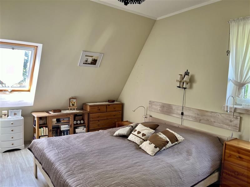 Część piwniczna domu znajduje się pod starą częścią budynku, z bezpośrednim wyjściem na ogród – idealna na pracownię, spiżarnię lub dodatkowe pomieszczenia gospodarcze.