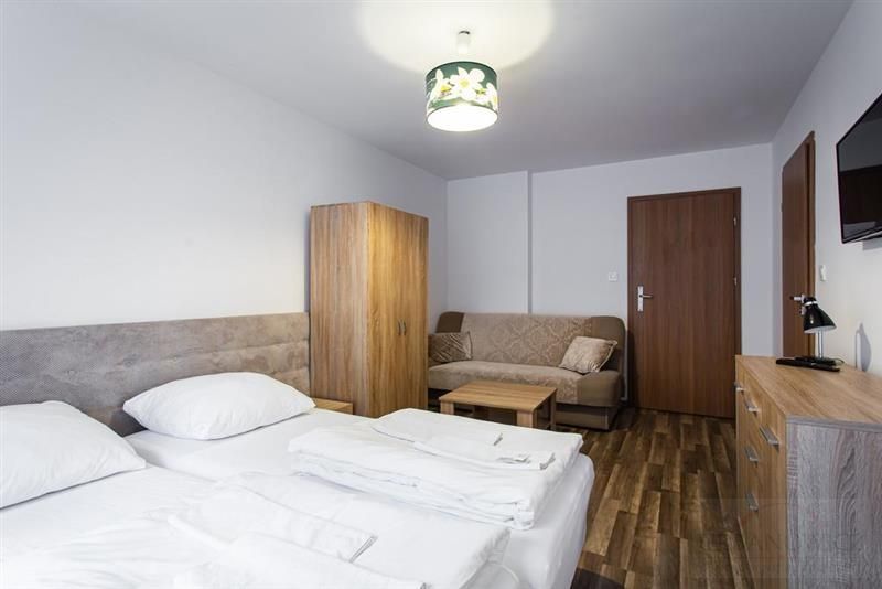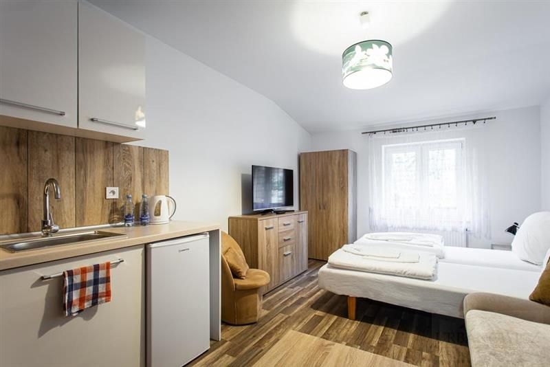 5 apartamentów z łazienkami oraz aneksami kuchennymi w pełni umeblowanych.