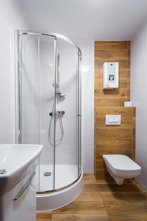 W apartamentach woda podgrzewana z podgrzewaczy przepływowych elektrycznych. Do apartamentów osobne wejście z zewnątrz budynku.