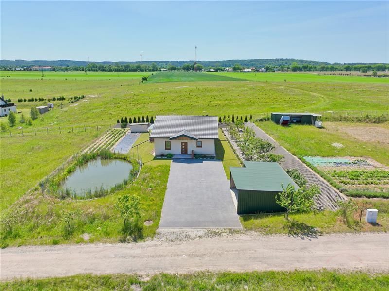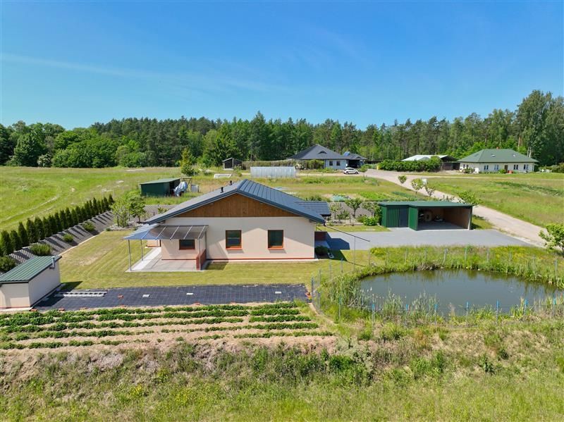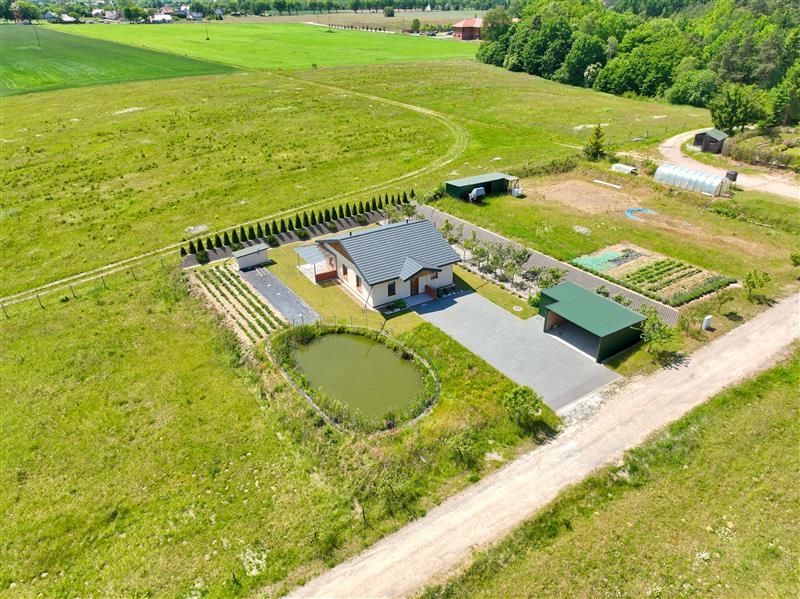 Przedmiotem sprzedaży jest parterowy dom jednorodzinny, wolnostojący sprzedawany w stanie deweloperskim o powierzchni całkowitej 83,40 m², posadowiony na przestronnej i w pełni zagospodarowanej działce o powierzchni 1500 m². Dodatkowym atutem nieruchomości jest murowana piwnica na terenie działki, wiata garażowa oraz oczko wodne.
