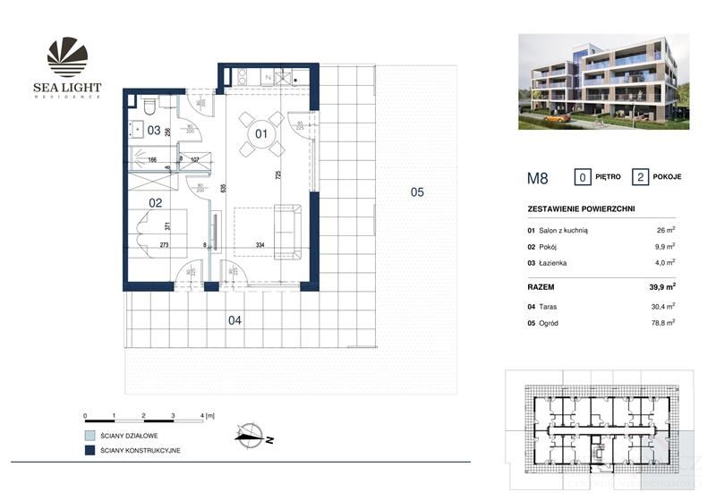 Prezentujemy dwupokojowy apartament o powierzchni 39,90 mkw z tarasem i ogródkiem położony na parterze.