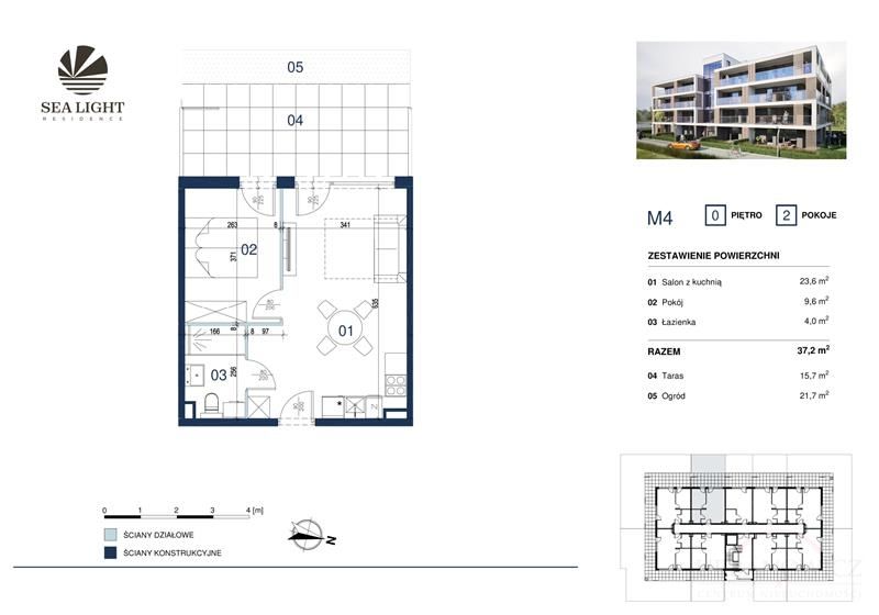 Prezentujemy dwupokojowy apartament o powierzchni 37,20 mkw z tarasem i ogródkiem położony na parterze.