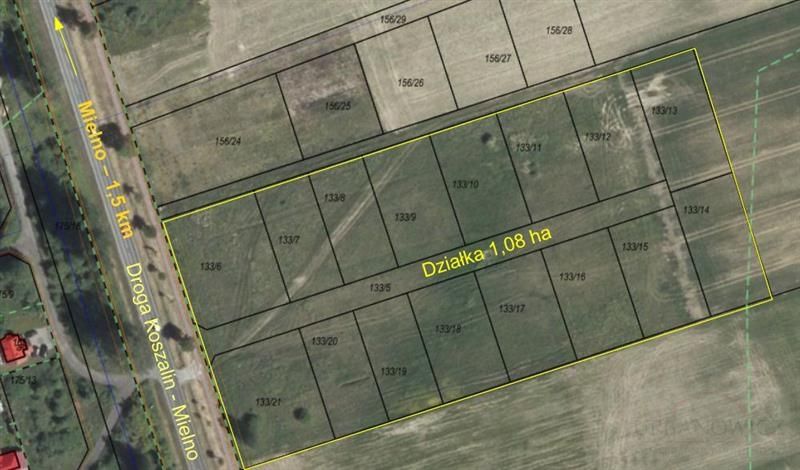 Dzialka znajduje się w kompleksie 20-stu działek. Miejsce perspektywiczne. Idealne miejsce na pensjonat. Położenie przy ścieżce rowerowej gwarantuje szybkie, łatwe i bezpieczne dotarcie do Mielna i na plażę. Teren jest intensywnie zabudowywany ze stale rosnącymi cenami nieruchomości więc może to byc również dobra lokata kapitału.