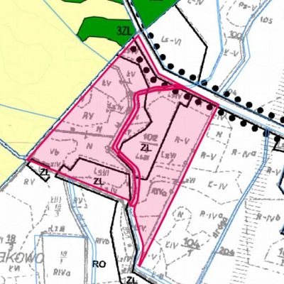 Grunt rolny, częściowo zalesiony, położony przy drodze asfaltowej. Przez środek działki przepływa ciek wodny. Teren urozmaicony i ciekawy. W Miejscowym Planie Zagospodarowania Przestrzennego teren przeznaczony pod: RO - teren produkcji rolnej oraz ZL - lasy wraz z niezbędną strukturą.
