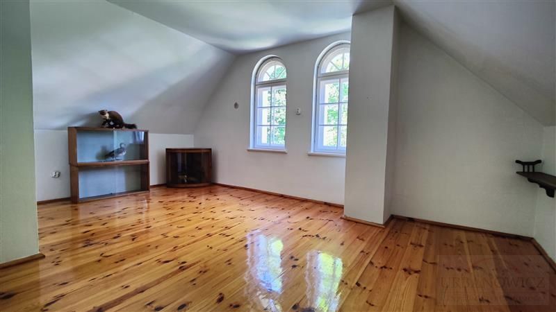 Na piętrze czeka na Ciebie aż 7 pokoi, 3 łazienki. Każdego ranka możesz zażywać kąpieli słonecznych na rozległym balkonie bezpośrednio przyległym do sypialni a w lecie i jesienią możesz wypatrywać prawdziwków wychylających swe kapelusze spod trawy pod wspaniałymi, wyniosłymi daglezjami. A to jeszcze nie wszystko! Pod całością budynku znajduje się podpiwniczenie o powierzchni około 240 m2, które zapewni dodatkowe miejsce do przechowywania czy realizacji własnych pomysłów. Trzy odrębne wejścia dają wiele możliwości wykorzystania nieruchomości jednocześnie np. jako mieszkalnej i jednocześnie pod wynajem.