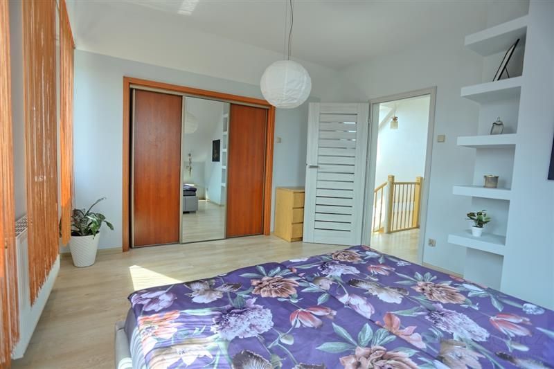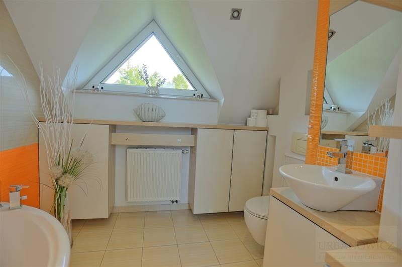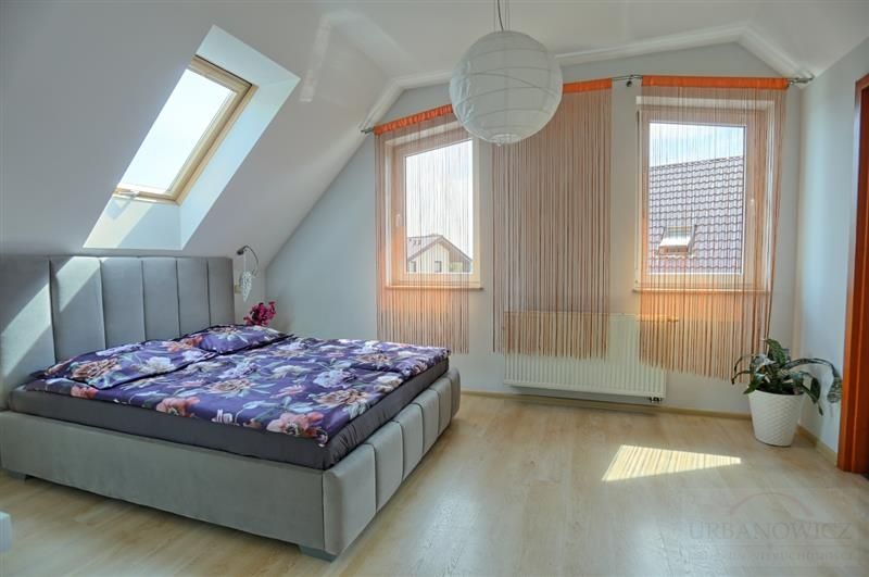 Piętro: dwie duże sypialnie (15,7 m² i 20 m²) oraz komfortowa łazienka z WC.