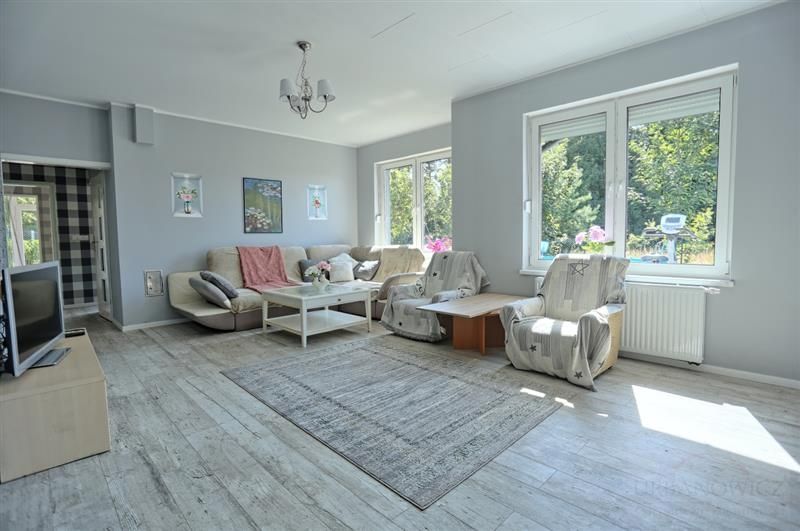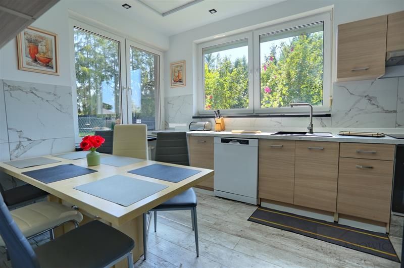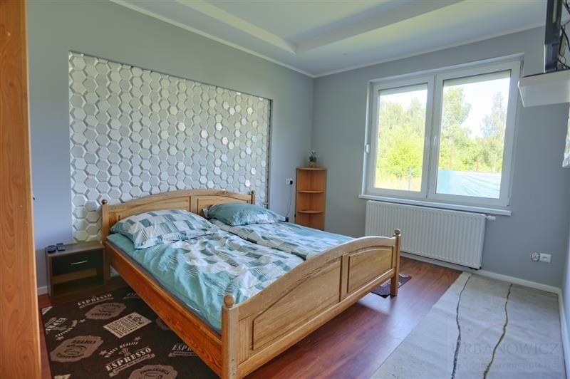 Dom znajduje się przy spokojnej ulicy osiedlowej, otoczonej zielenią i lasami. To idealne miejsce dla osób poszukujących ciszy, prywatności i kontaktu z naturą, przy jednoczesnym szybkim dojeździe do większych miejscowości.