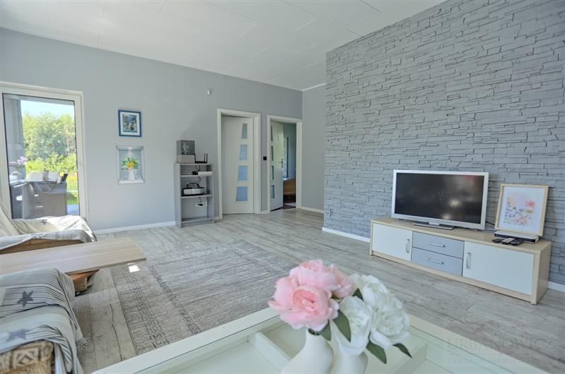 przestronny salon z wyjściem na taras – idealne miejsce na odpoczynek i spotkania rodzinne,