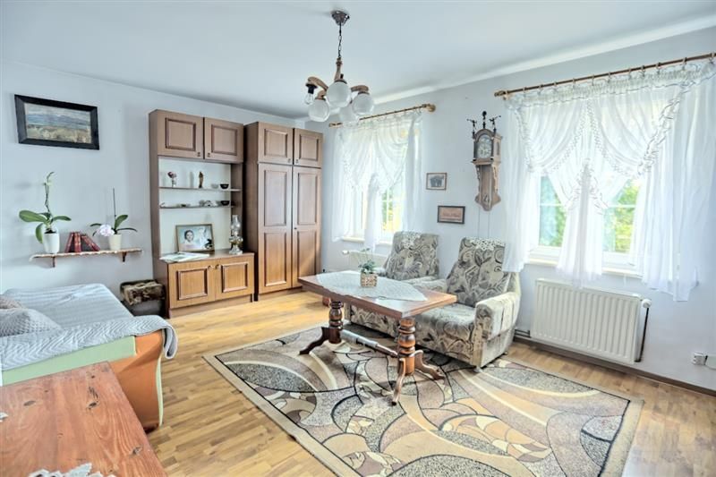 Dodatkowo w skład nieruchomości wchodzą drewniany budynek garażu/ magazynu znajdujący się za domem o powierzchni około 35 m2, oraz budynek użytkowy o powierzchni użytkowej 31,98 m2, w którym można prowadzić sklep, lokal usługowy, lub zaaranżować na małą kawalerkę pod wynajem (znajduje się w dobudowanej części budynku, za apteką)