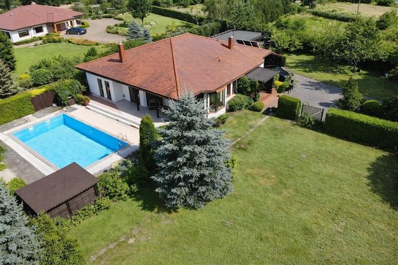 Dom jednorodzinny o powierzchni 230 m² (155 m² + 75 m²), usytuowany na przestronnej działce 5444 m².