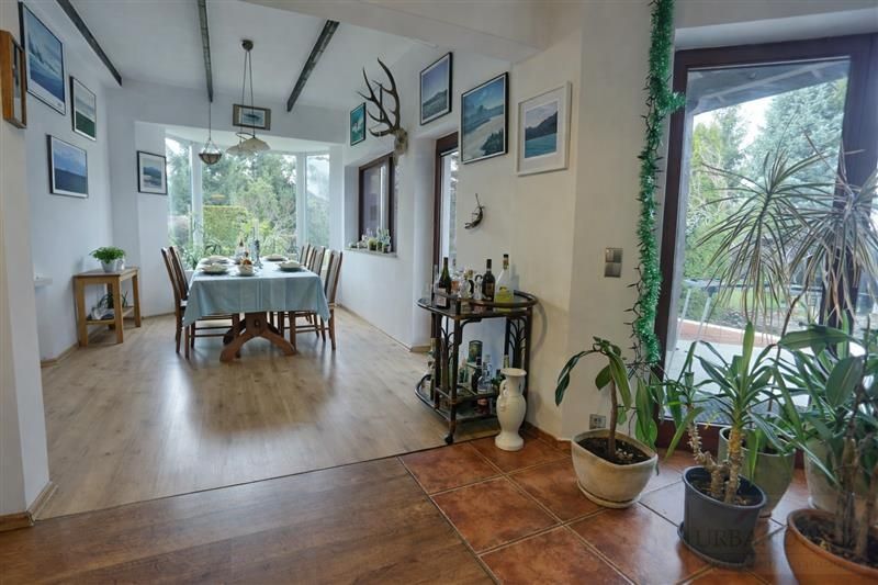 Działka ogrodzona o powierzchni 5444 m² to dojrzała, starannie ukształtowana przestrzeń z wieloletnią roślinnością. Dorodne drzewa i gęste krzewy tworzą naturalny, parkowy charakter oraz zapewniają pełną prywatność.
