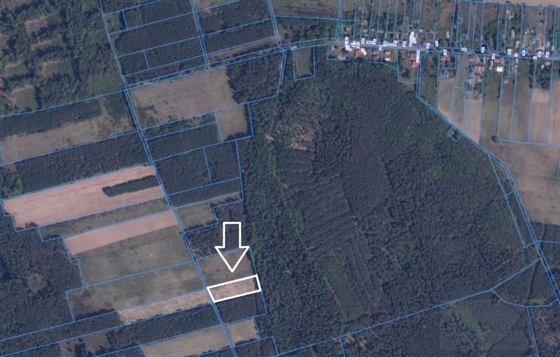 Działka o wymiarach ok. 121 m x 38 m, usytuowana w odległości ok. 600 m od drogi głównej asfaltowej przebiegającej przez miejscowość.