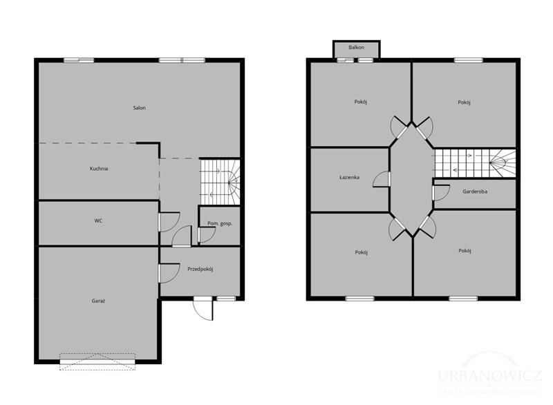 W skład nieruchomości wchodzi 5 pokoi, przedpokój, hall, wc, łazienka z wc, spiżarnia, kuchnia, garderoba oraz garaż w bryle budynku.