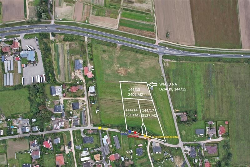 144/17 - powierzchnia 3127 m2, wymiary ok. 36 m x 80 m - cena 469 000 zł (działka sprzedawana z udziałem w drodze wewnętrznej 144/16)