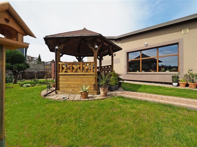 Działka bardzo ładnie zagospodarowana, chroniąca przed wzrokiem sąsiadów. Znajduje się tu altana, wędzarnia z grillem oraz liczne, bardzo oryginalne nasadzenia. Z części działki wygospodarowano parking dla samochodów i klientów z racji prowadzonej tu kiedyś działalności więc istnieje możliwość przesunięcia ogrodzenia celem jej powiększenia.
