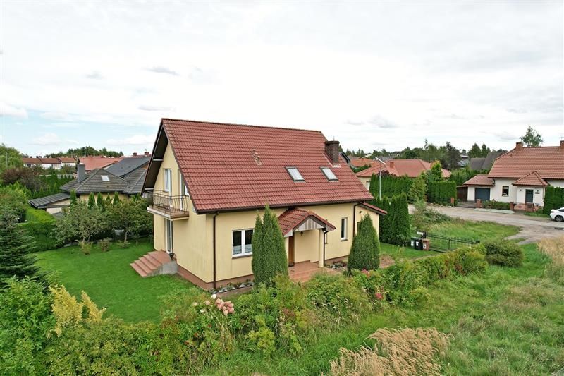 Całość wybudowana z suporeksu, dach pokryty dachówką betonową, okna PCV. Ogrzewanie podłogowe rozprowadzone w korytarzu na parterze oraz obydwu łazienkach (parter-piętro). Dom wyposażony w instalację alarmową.