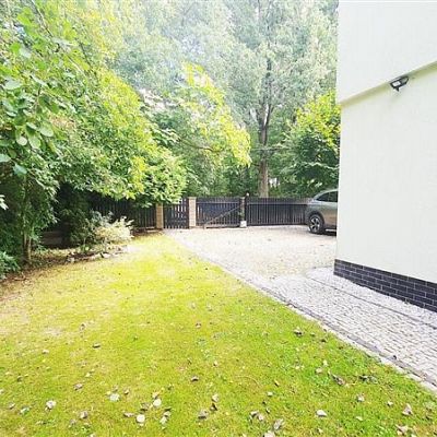 Działka ogrodzona, zagospodarowana z licznymi krzewami i drzewami.Wjazd na teren posesji poprzez bramę na pilota.