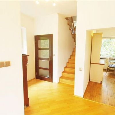 Nieruchomość wyposażona w system alarmowy, monitoring TV i rolety antywłamaniowe na parterze.