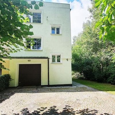 Dom trzy kondygnacyjny, podpiwniczony z garażem w bryle budynku.