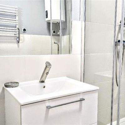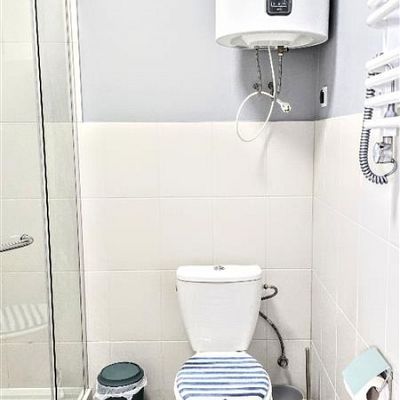 Łazienka: bojler elektryczny, kabina prysznicowa, wc.