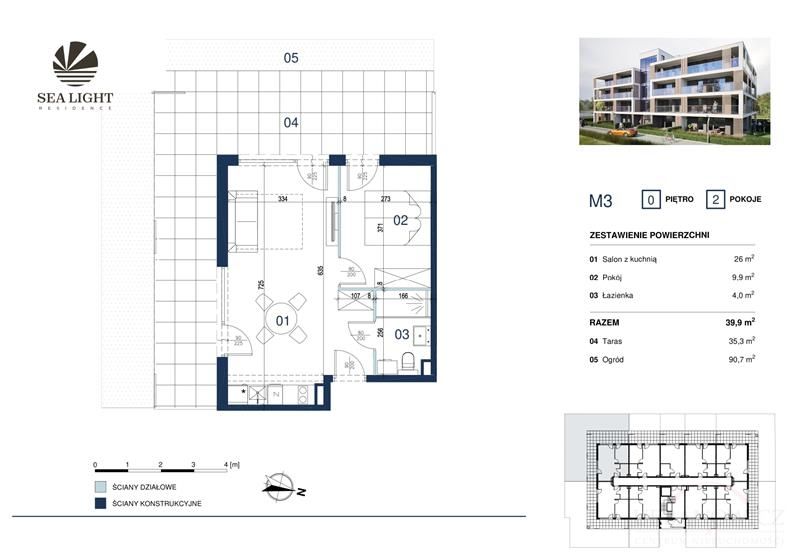 Prezentujemy dwupokojowy apartament o powierzchni 39,90 mkw z tarasem i ogródkiem położony na parterze.