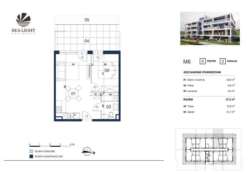 Prezentujemy dwupokojowy apartament o powierzchni 37,20 mkw z tarasem i ogródkiem położony na parterze.