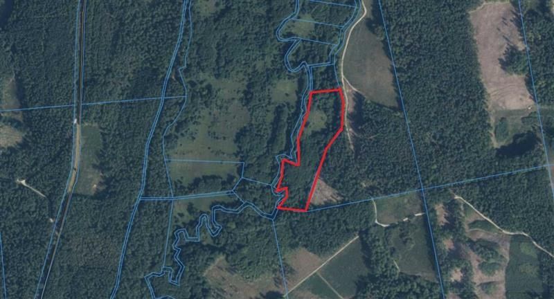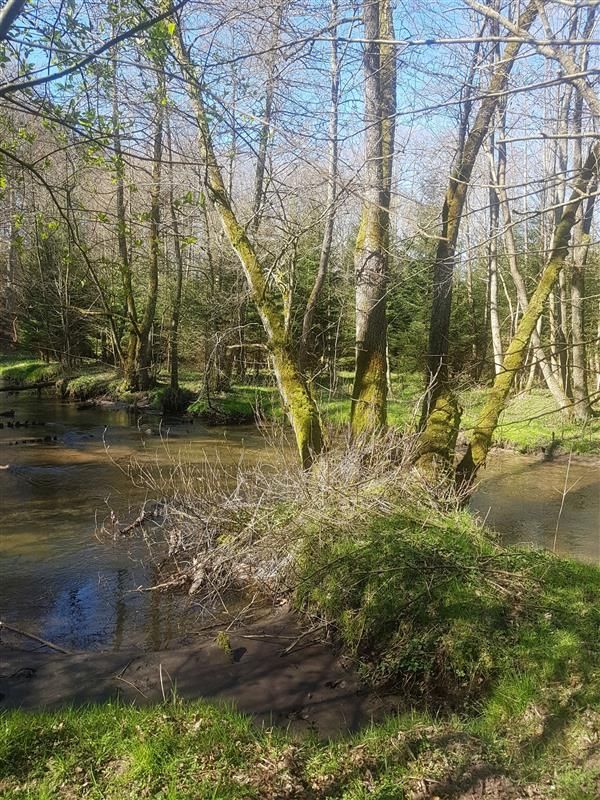 Przepięknie położona działka, wśród lasów i polan z linią brzegową rzeki Grabowa.